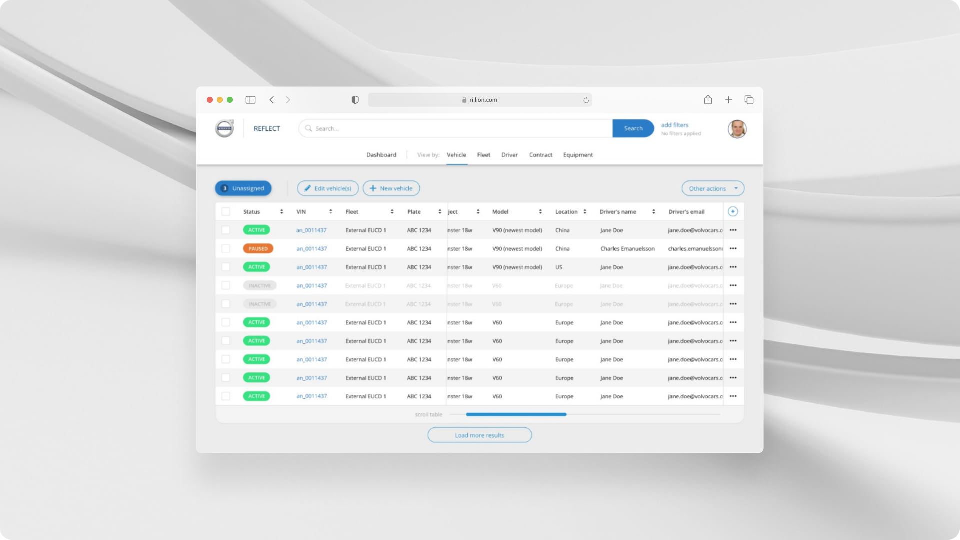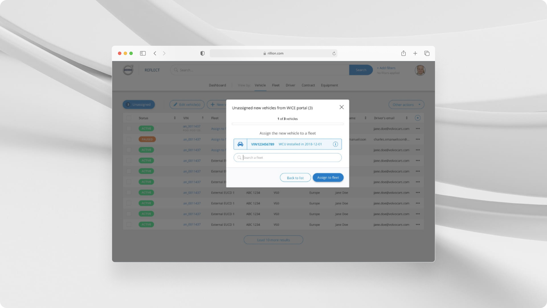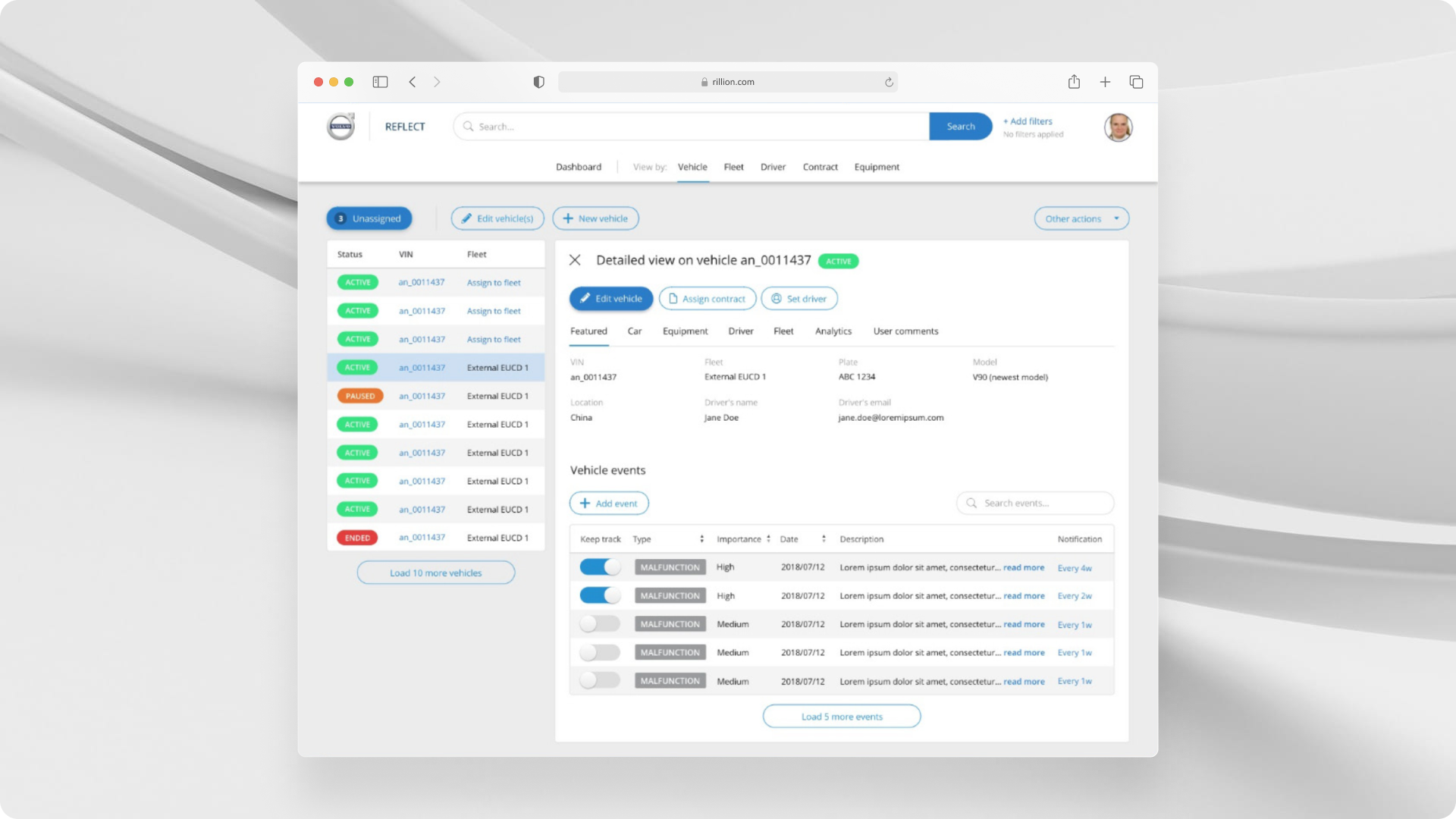 Volvo Cars R&D had no dedicated tool for managing fleets—monitoring vehicles, assigning drivers, and handling events was fragmented. Stakeholders needed a single place to view vehicles by status, fleet, and driver, and to handle unassigned vehicles from sources like the WICE portal.